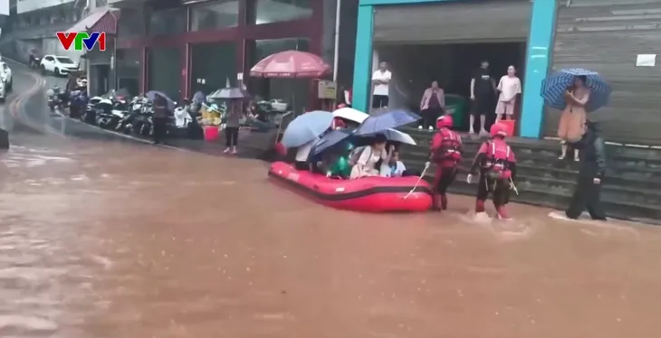 Nước lũ đổ về hạ lưu cũng gây ảnh hưởng nghiêm trọng tới nhiều khu vực ở Tây Nam Trung Quốc. Tại thị trấn Mỹ Lâm, tỉnh Quảng Tây, mực nước lũ vượt ngưỡng an toàn hơn 4 mét - mức kỷ lục khiến cả thị trấn chìm trong biển nước, giao thông tê liệt, cuộc sống người dân bị đảo lộn nghiêm trọng.
