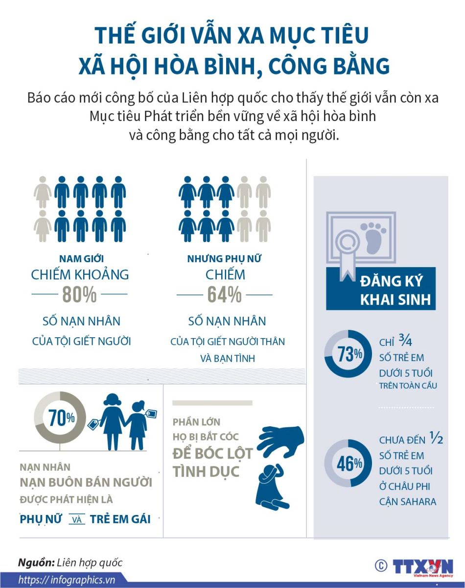 Báo cáo mới công bố của Liên hợp quốc cho thấy thế giới vẫn còn xa mục tiêu phát triển bền vững về xã hội hòa bình và công bằng cho tất cả mọi người.