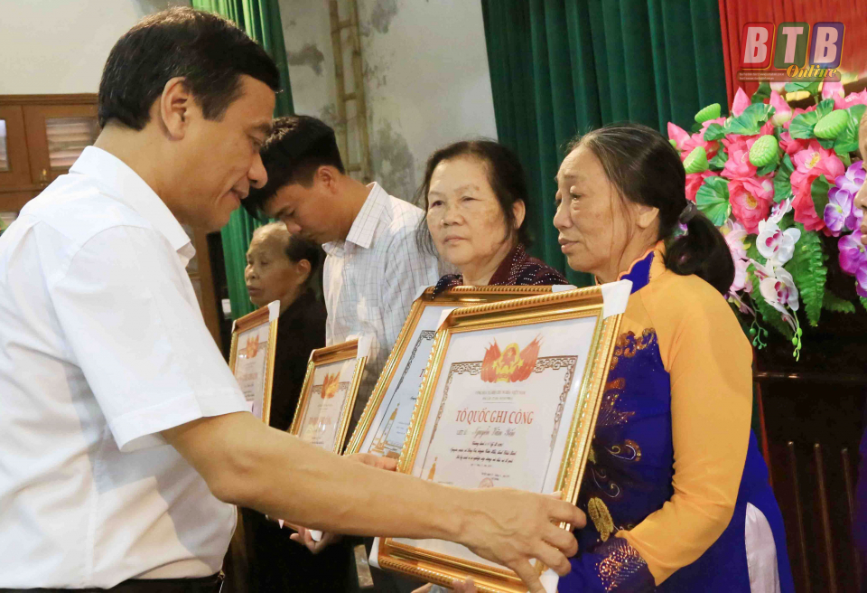 Tại buổi lễ, đồng chí Nguyễn Hồng Diên, Ủy viên Trung ương Đảng, Bí thư Tỉnh ủy, Chủ tịch HĐND tỉnh và đồng chí Đặng Trọng Thăng, Phó Bí thư Tỉnh ủy, Chủ tịch UBND tỉnh đã trao 19 Bằng Tổ quốc ghi công cho thân nhân các gia đình liệt sĩ.