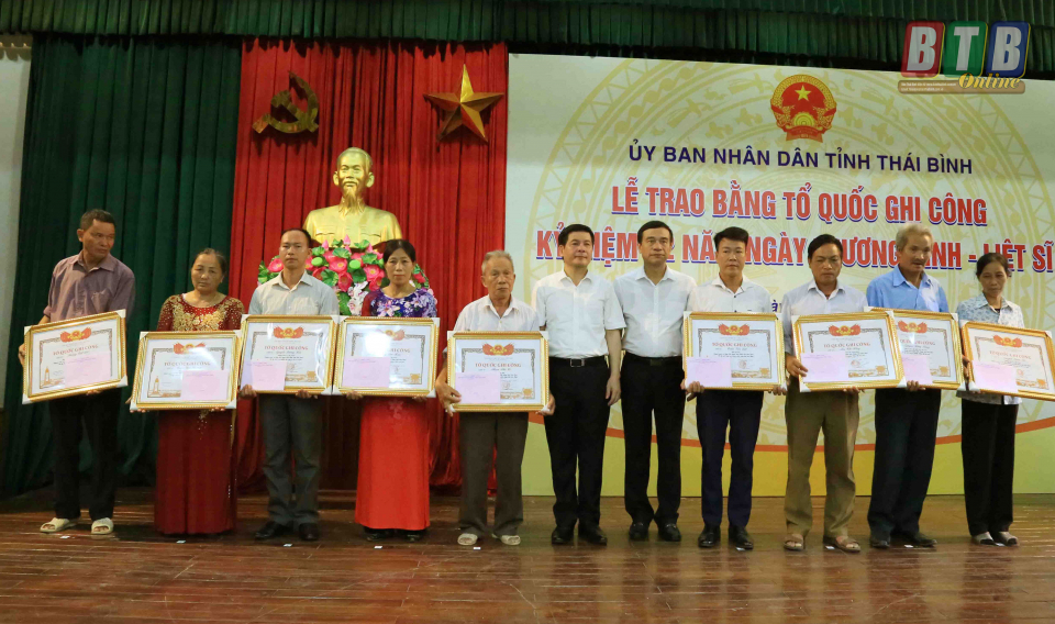 Nhân dịp kỷ niệm 72 năm ngày Thương binh – Liệt sĩ (27/7/1947 - 27/7/2019), tỉnh Thái Bình đã hoàn thiện hồ sơ đề nghị các cấp có thẩm quyền xác nhận liệt sĩ cho 32 trường hợp. Đến nay, các bộ, ngành trung ương đã thẩm định trình Thủ tướng Chính phủ cấp Bằng Tổ quốc ghi công cho 19 liệt sĩ.