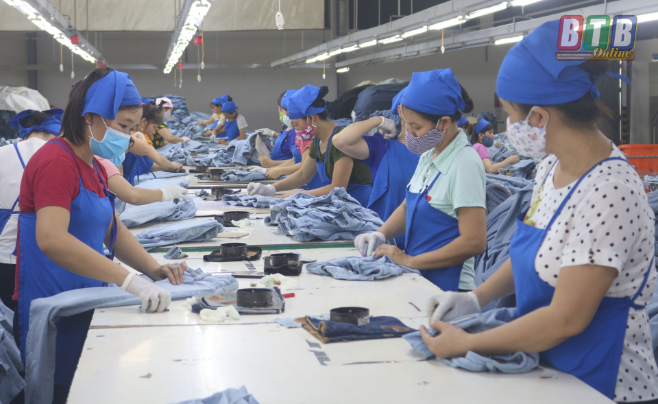 Công nhân Công ty TNHH May Texhong Thái Bình thi đua lao động sản xuất.