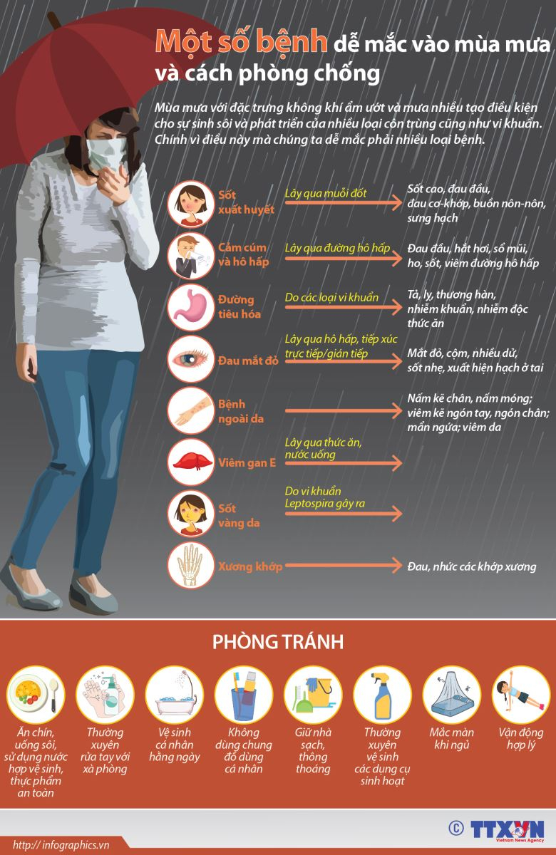 Một số bệnh dễ mắc vào mùa mưa và cách phòng chống