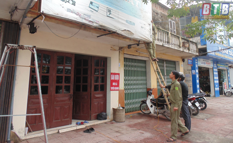 Lực lượng chức năng thu dỡ mái che, mái vẩy trên đường Lý Thường Kiệt