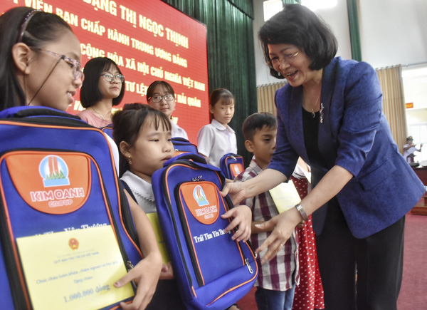 Phó Chủ tịch nước Đặng Thị Ngọc Thịnh tặng quà cho con cán bộ, chiến sĩ