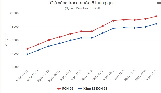 Như vậy, đây là lần tăng giá thứ 2 liên tiếp từ tháng 4 đến nay. Tổng cộng xăng RON 95 đã tăng thêm 560 đồng một lít, và E5 RON 92 đắt thêm 620 đồng một lít.