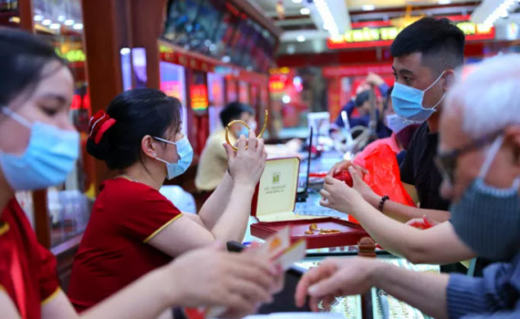 Hiện giá vàng thế giới quy đổi theo tỷ giá niêm yết vào khoảng 51,8 triệu đồng/lượng, thấp hơn giá vàng SJC khoảng 16,8 triệu đồng/lượng và thấp hơn giá vàng trang sức khoảng 2,9 triệu đồng/lượng.