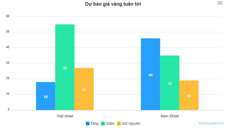 Kết quả khảo sát vàng hàng tuần của Kitco trên Phố Wall cho thấy, 11 nhà phân tích tham gia cuộc khảo sát, 55% dự đoán giá sẽ giảm, 27% trung lập và chỉ 18% dự đoán giá tăng cao hơn. Theo kết quả của Main Street, 46% dự đoán giá cao hơn, 35% dự đoán giảm giá và 19% trung lập.