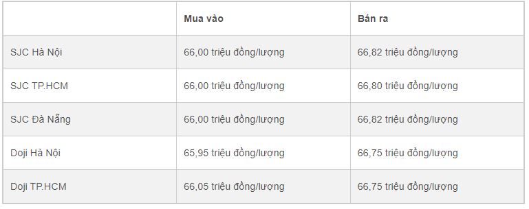 Doji Hà Nội: 66,00 triệu đồng/lượng - 66,85 triệu đồng/lượng