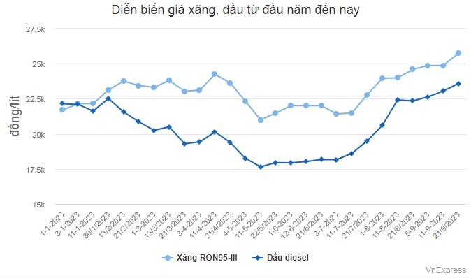 | Dầu diesel | 23.590 | + 540 |