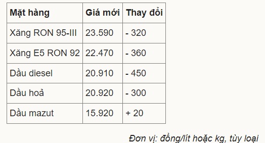 Giá xăng, dầu sau thay đổi như sau: