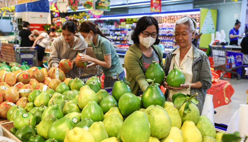 Với trái cây, giá một số loại như thanh long, cam canh giá tăng cục bộ tại một số khu vực. Cụ thể, thanh long 60.000-90.000 đồng một kg, xoài cát 50.000-60.000 đồng, cam canh 50.000-77.000 đồng; bưởi diễn 20.000-25.000 đồng, táo nhập khẩu 100.000-120.000 đồng một kg...