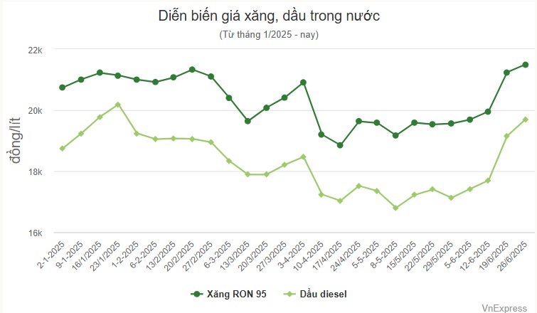 Từ 1/7, thuế giá trị gia tăng (VAT) với xăng dầu sẽ giảm 2%, từ 10% về 8%, theo Nghị quyết của Quốc hội. Tức là, từ 0h ngày 1/7 giá xăng dầu sẽ hạ tương ứng, 100-130 đồng một lít với xăng E5 RON 92 và RON 95-III. Tương tự, các mặt hàng dầu (trừ mazut) sẽ giảm thêm 140-200 đồng một lít.