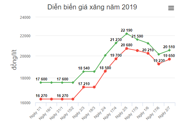 Sau điều chỉnh, xăng E5 RON 92 lên mức tối đa 19.653 đồbg một lít; xăng RON 95 là 20.517 đồng; dầu diesel 16.949 đồng một lít...