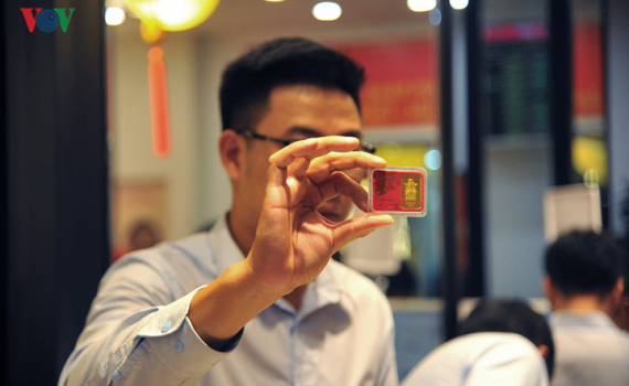 Quy đổi theo giá USD tại Vietcombank (23.140 VND/USD), giá vàng thế giới tương đương 42,27 triệu đồng/lượng, cao hơn giá bán của vàng SJC 170.000 đồng/lượng.