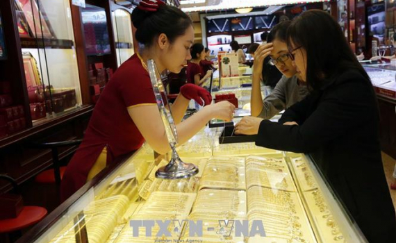 Giá vàng trong nước sáng 27/12 ghi nhận mức tăng cao nhất trong 3 tháng qua. Ảnh: TTXVN