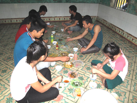 Bữa ăn đạm bạc của nhân viên bán hàng đa cấp tại xã Song An (Vũ Thư).