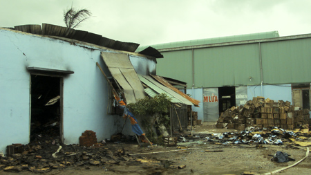 Hiện trường vụ cháy tại Công ty sản xuất bật lửa gas Hoa Việt (xã Nguyên Xá, Đông Hưng).