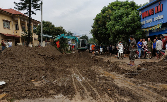 Mưa lớn gây lũ ống khiến một lượng lớn đất đá bị cuốn về hạ lưu tràn qua thôn 1, xã Minh Lương (huyện Văn Bàn), lúc 2h ngày 17/4.