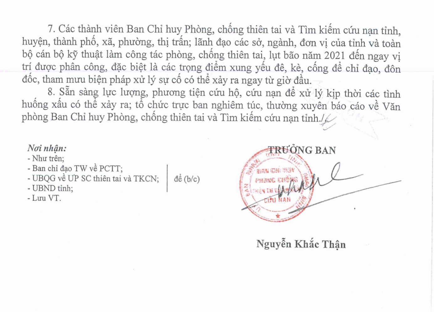 Công điện khẩn số 02 của Trưởng ban Chỉ huy Phòng, chống thiên tai và Tìm kiếm cứu nạn tỉnh Thái Bình