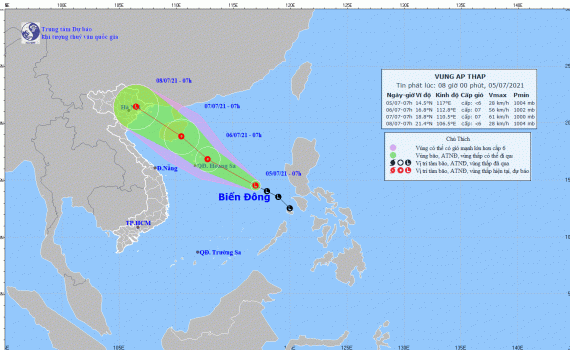 Tin về vùng áp thấp trên biển Đông (hồi 07h ngày 05/7/2021)