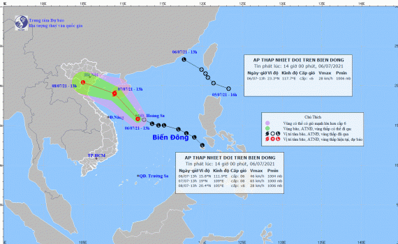 Tin áp thấp nhiệt đới trên biển Đông (hồi 13h ngày 06/7/2021)
