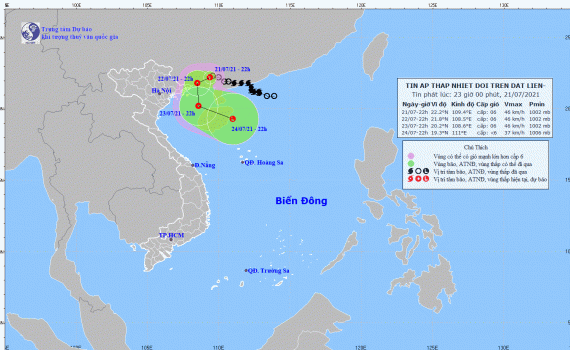 Tin áp thấp nhiệt đới trên đất liền (Hồi 22h ngày 21/7/2021