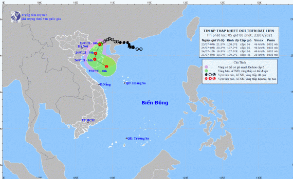 Tin áp thấp nhiệt đới trên đất liền (Hồi 04h ngày 23/7/2021)