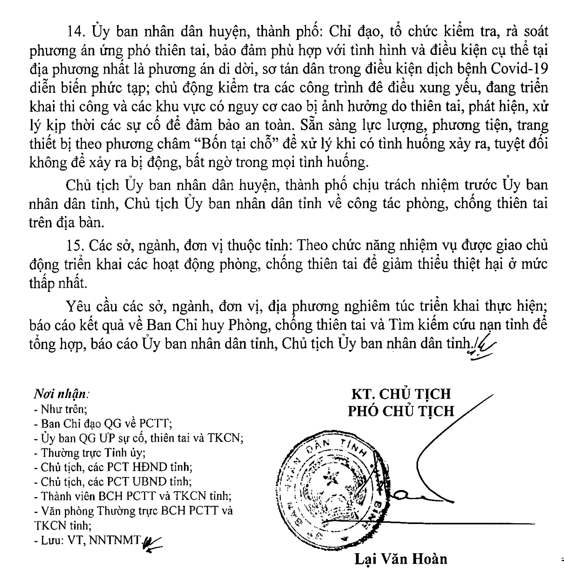 Công văn số 3983/UBND-NNTNMT về việc sẵn sàng ứng phó với thiên tai