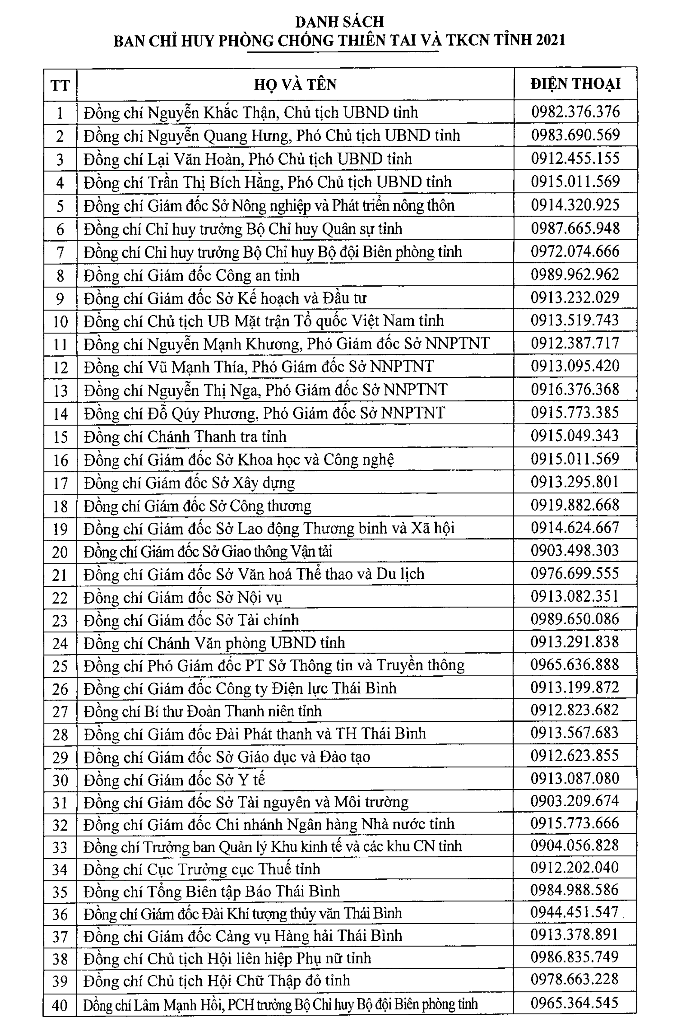- Công điện khẩn số 11/CĐ-PCTT ngày 5/9/2024 của Ban Chỉ huy PCTT và TKCN tỉnh Thái Bình điện Ban Chỉ huy PCTT và TKCN các cấp, các ngành 05.09.2024 | 19:05 PM