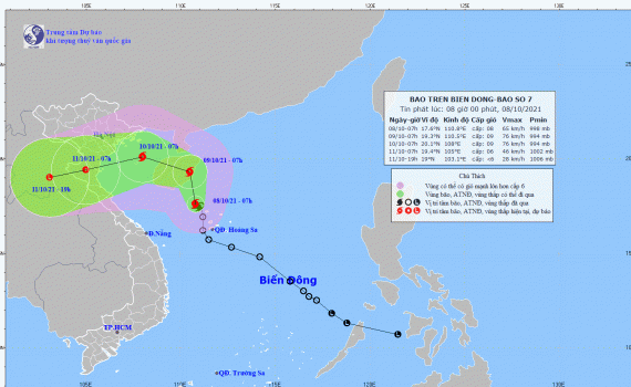 Tin bão trên biển Đông (Cơn bão số 7) hồi 07h ngày 08/10/2021