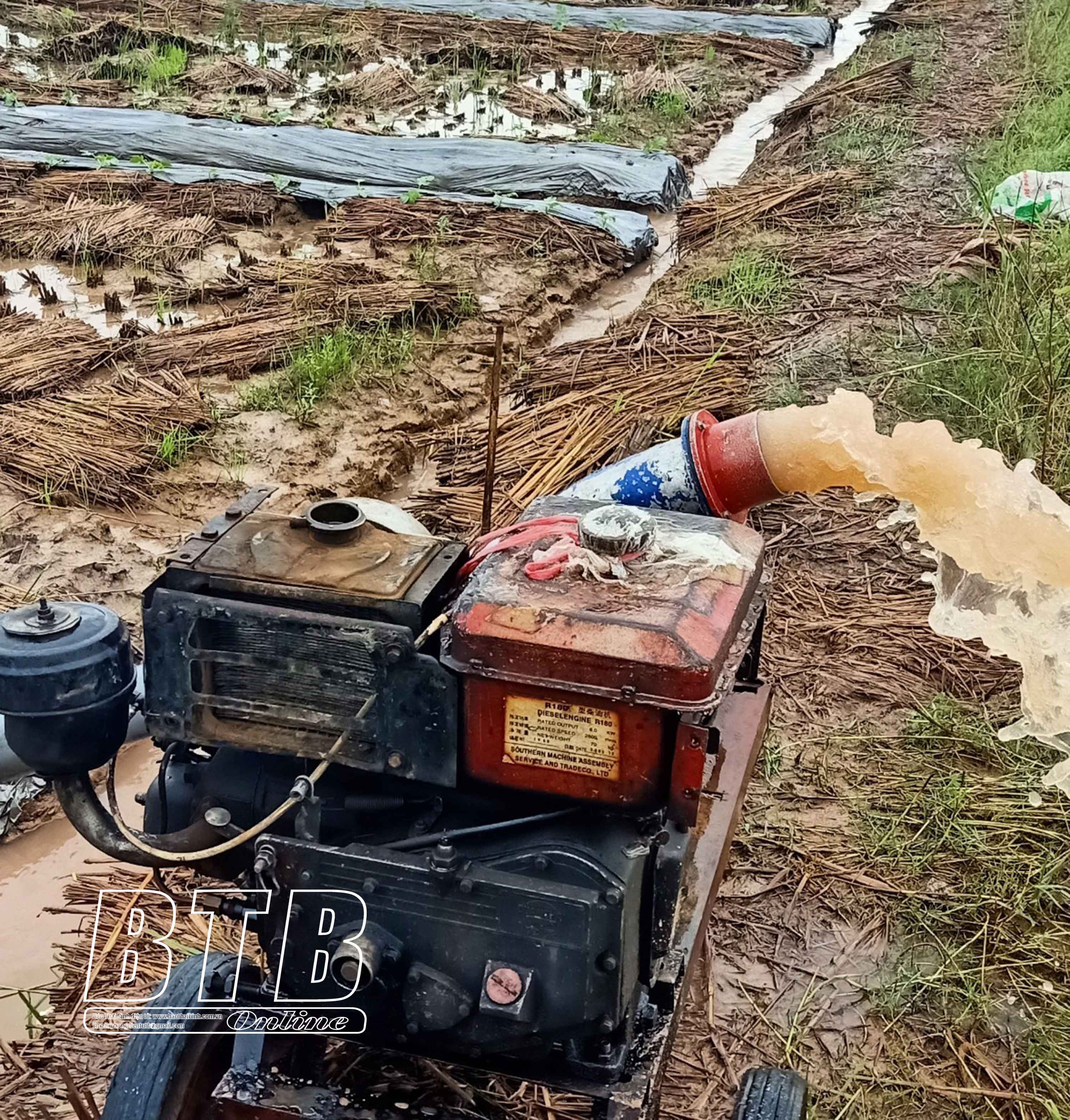 Trạm bơm Khai Lai (Thái Thụy) vận hành bơm tiêu úng. Ảnh: Trần Tuấn
