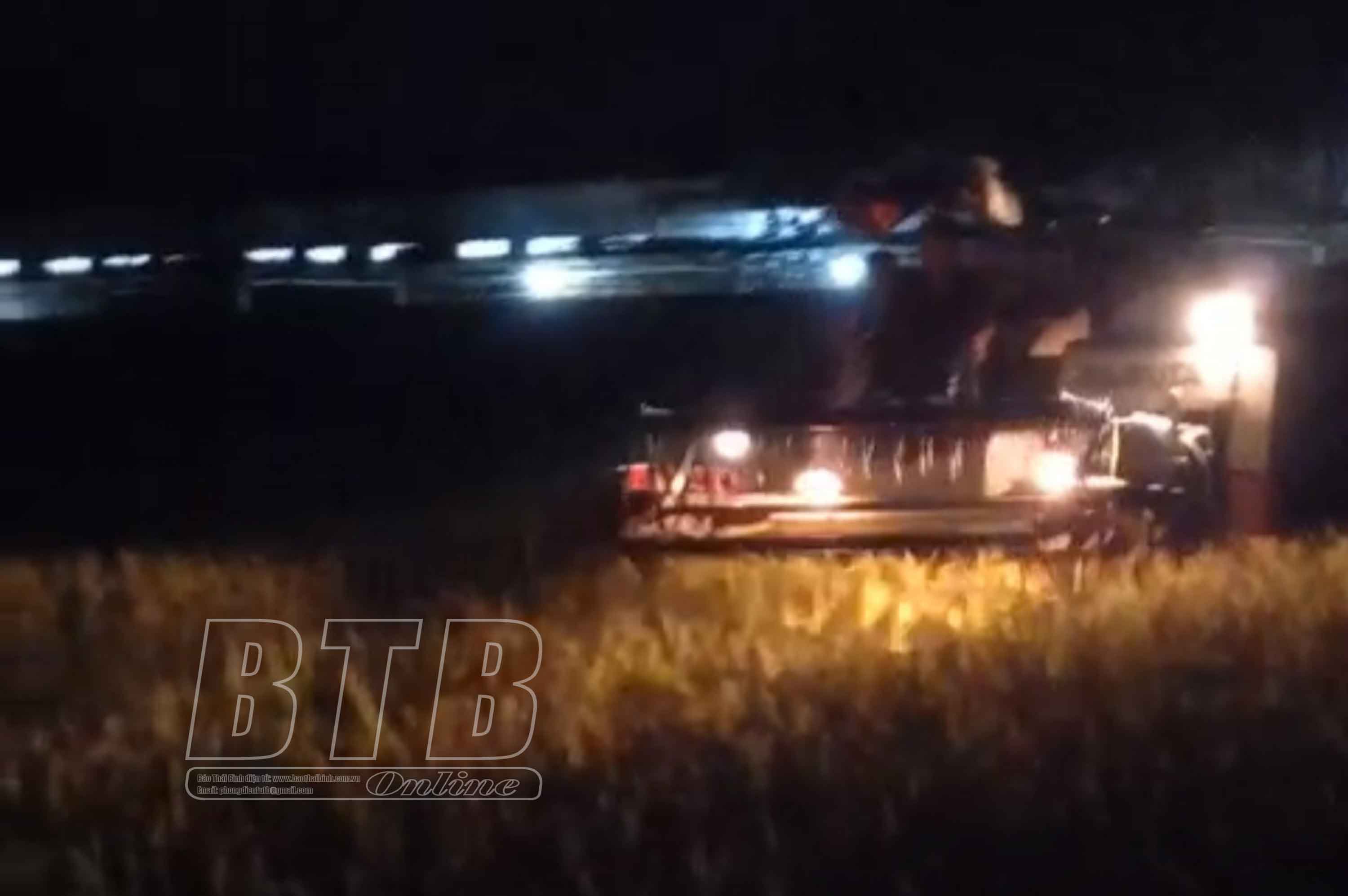 Gặt lúa xuyên đêm để “chạy” bão. Ảnh: Thu Hiền