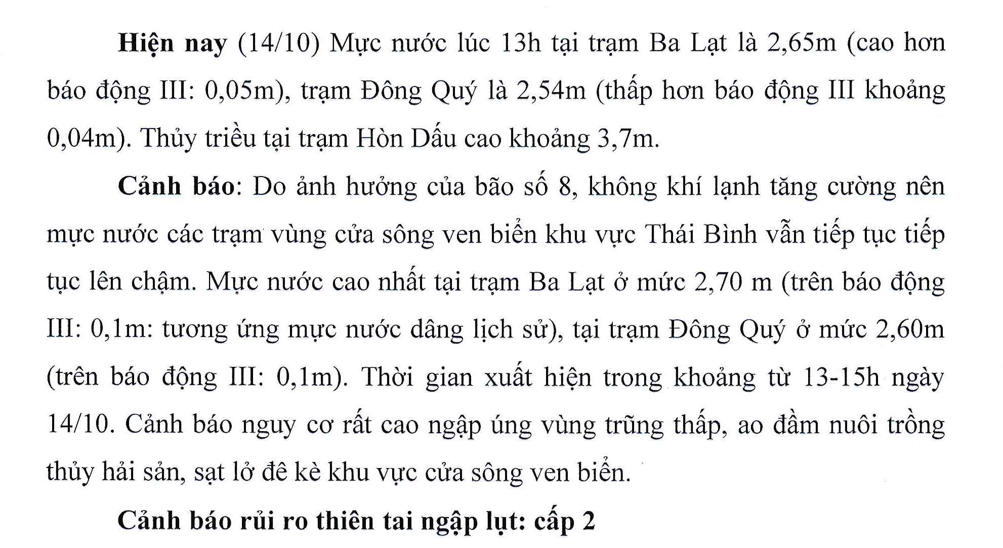Tin dự báo ngập lụt khẩn cấp vùng cửa sông ven biển khu vực Thái Bình