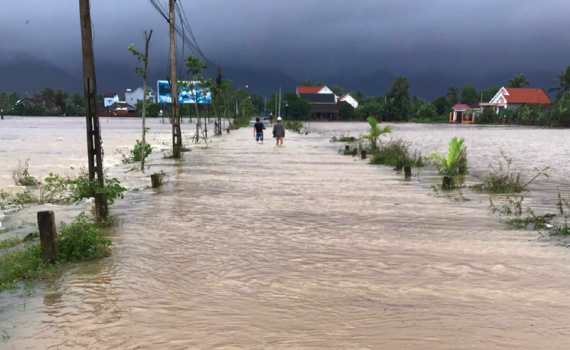 Đường vào thôn Xuân Mỹ, xã Hòa Mỹ Đông, huyện Tây Hòa, tỉnh Phú Yên bị ngập trong nước lũ (Nguồn ảnh: baophuyen.vn).