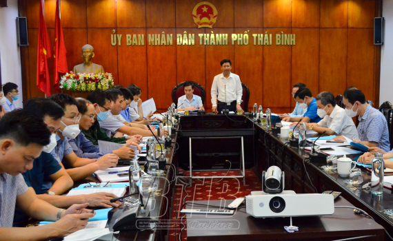 Lãnh đạo UBND thành phố phát biểu tại cuộc họp.