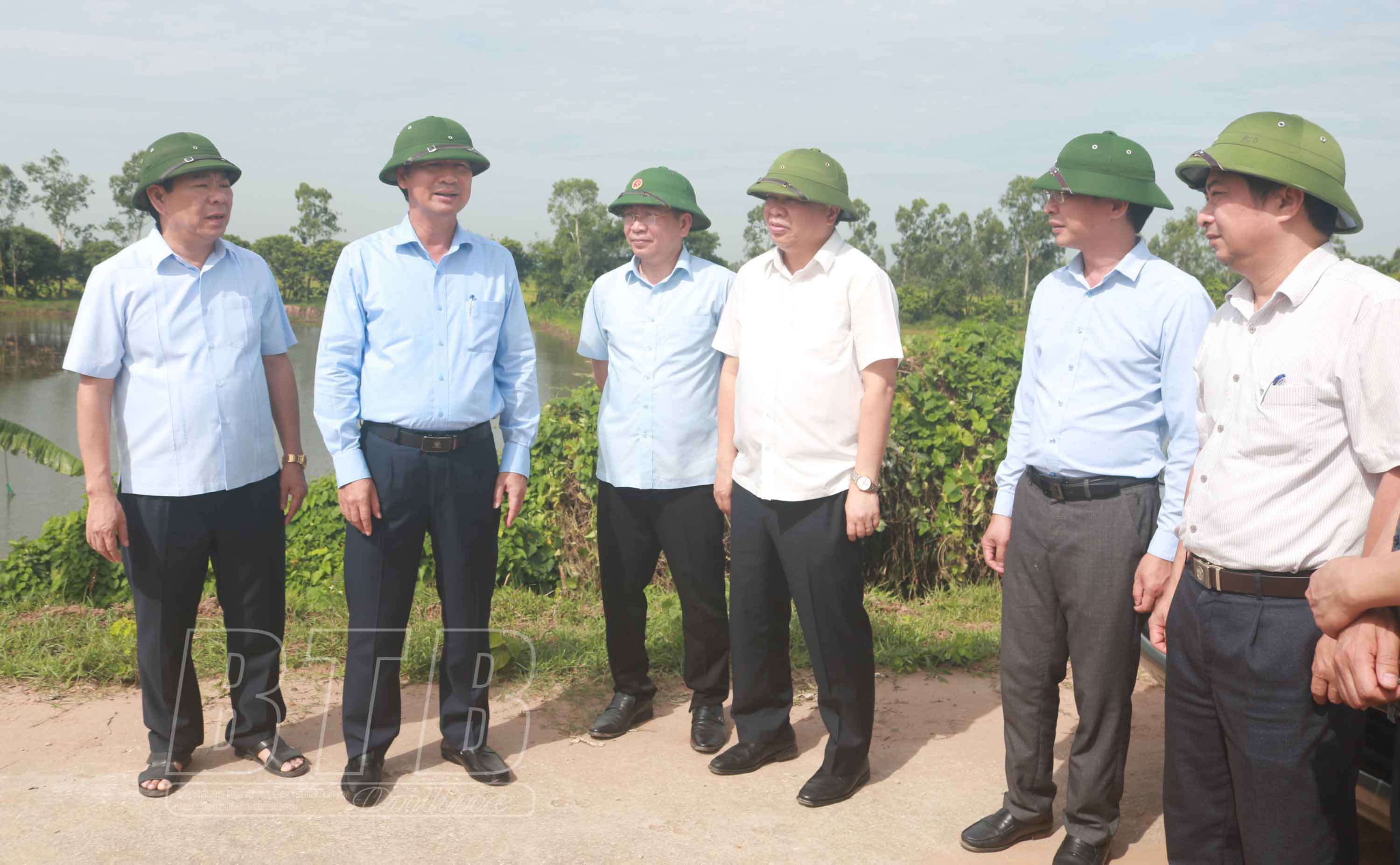 Đoàn công tác của Ban Chỉ đạo quốc gia về PCTT cùng các đồng chí lãnh đạo tỉnh kiểm tra dự án xử lý cấp bách đê tả Trà Lý, đoạn từ Km2+900 đến Km6+600 xã Hồng Minh, xã Chí Hòa (Hưng Hà).
