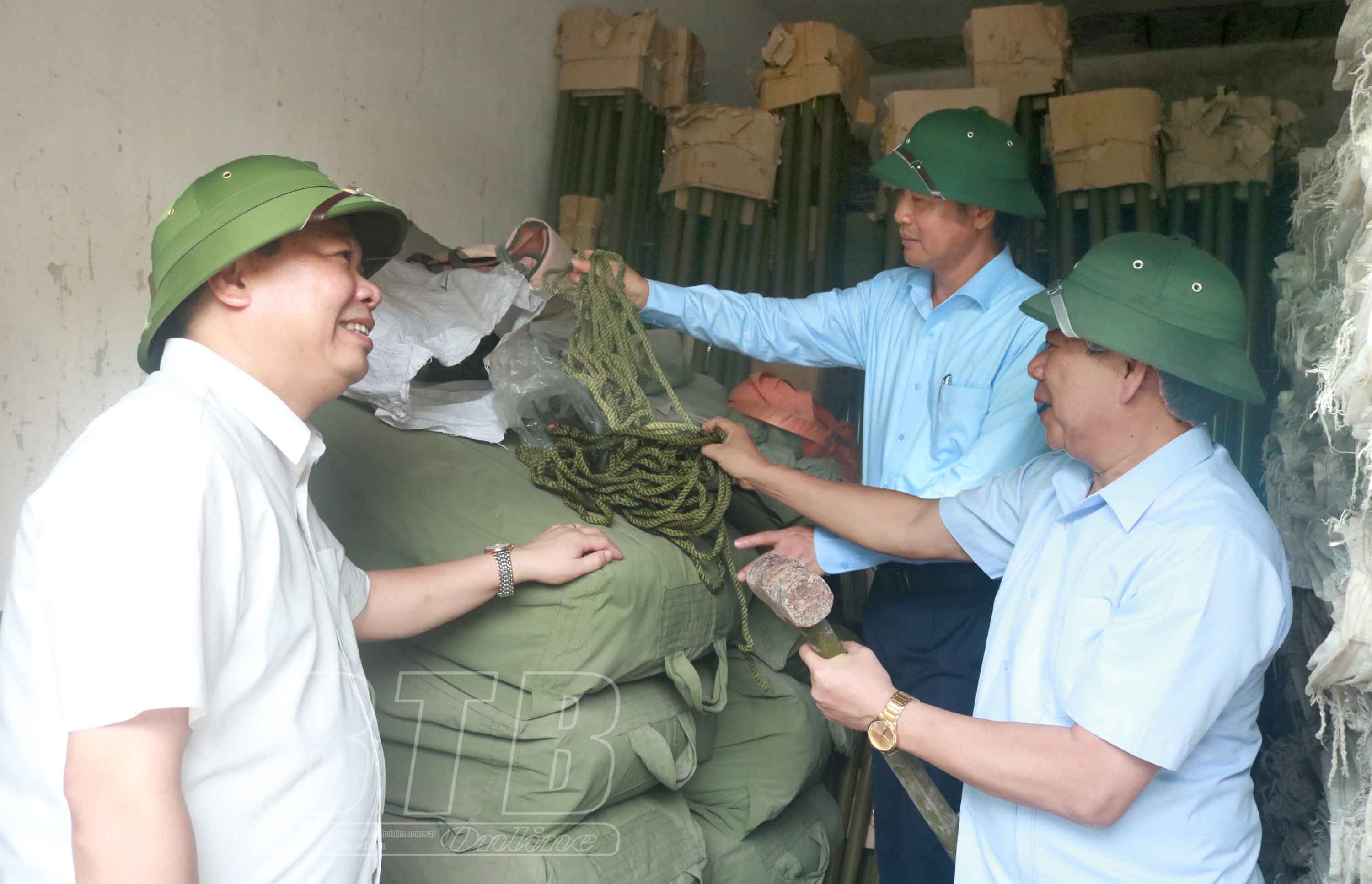Đoàn công tác của Ban Chỉ đạo quốc gia về PCTT cùng các đồng chí lãnh đạo tỉnh kiểm tra kho vật tư dự trữ huyện Đông Hưng.