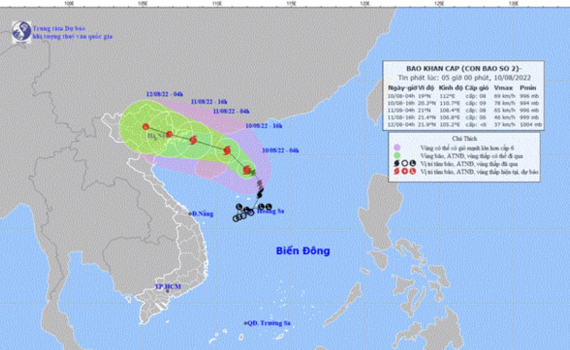 Theo Trung tâm Dự báo Khí tượng Thủy văn Quốc gia, vào 4 giờ ngày 10/8, vị trí tâm bão ở vào khoảng 19,0 độ Vĩ Bắc; 112,0 độ Kinh Đông, cách đảo Hải Nam (Trung Quốc) khoảng 160km về phía Đông.