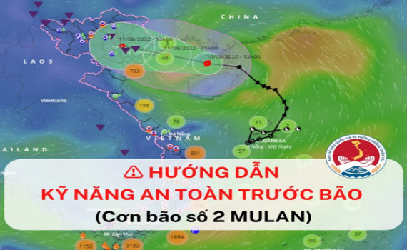 Theo dự báo, cơn bão số 2 (MULAN) sẽ đi vào đất liền các tỉnh ven biển Bắc bộ trong 24 giờ tới. Do ảnh hưởng của bão, từ đêm nay (10/8) đến sáng mai (11/8), khu vực ven biển từ Quảng Ninh đến Thái Bình có gió cấp 6-7, giật cấp 9; các đảo Bạch Long Vỹ, Cô Tô có gió cấp 7-8, giật cấp 10. Thực hiện Công điện số 24/CĐ-QG ngày 09/8/2022 của Ban Chỉ đạo quốc gia về Phòng, chống thiên tai; Văn phòng thường trực Ban Chỉ đạo đề nghị người dân chú ý: