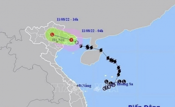 Thủ đô Hà Nội từ ngày 11- 12/8 có mưa vừa, mưa to, có nơi mưa rất to và dông với lượng mưa phổ biến từ 70-150mm, có nơi trên 150mm, trong mưa dông có khả năng xảy ra lốc, sét, mưa đá và gió giật mạnh. Các khu vực trũng, thấp tại các tỉnh Hòa Bình, Sơn La, Lạng Sơn, Quảng Ninh, Phú Thọ... có nguy cơ cao xảy ra lũ quét, sạt lở đất tại các tỉnh vùng núi và ngập úng.