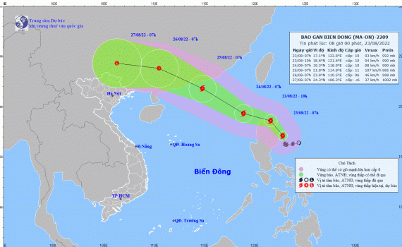 Theo Trung tâm Dự báo Khí tượng thuỷ văn quốc gia, vào lúc 7 giờ ngày 23/8, vị trí tâm bão ở khoảng 17,1 độ Vĩ Bắc; 122,8 độ Kinh Đông, trên vùng biển phía Đông đảo Luzon (Philippines). Sức gió mạnh nhất vùng gần tâm bão mạnh cấp 9 - 10 (75 - 102 km/giờ), giật cấp 12.