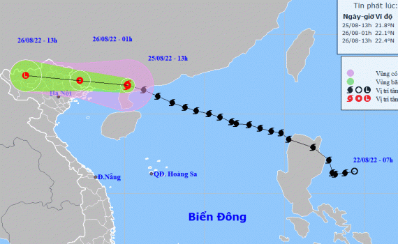 Hồi 13 giờ, vị trí tâm bão ở khoảng 21,8 độ Vĩ Bắc; 110,2 độ Kinh Đông, trên khu vực đất liền phía Bắc bán đảo Lôi Châu (Trung Quốc), cách Móng Cái (Quảng Ninh) khoảng 250km về phía Đông Đông Bắc. Sức gió mạnh nhất vùng gần tâm bão mạnh cấp 9 (75-88km/giờ), giật cấp 11. Bán kính gió mạnh cấp 6, giật cấp 8 khoảng 130km tính từ tâm bão.