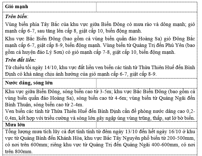 Bản tin tiếp theo được phát lúc 11h00 ngày 14/10.
