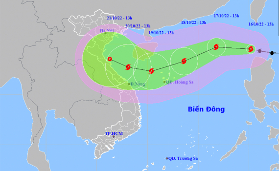 Lúc 13h ngày 18/10, bão cách quần đảo Hoàng Sa khoảng 320km về phía Đông Bắc, cường độ mạnh cấp 12-13, giật cấp 16, di chuyển chủ yếu theo hướng Tây Tây Nam với tốc độ 15km/h.