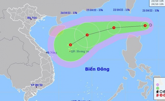 13h/22/10 | Tây, 20 km/h | 19,8N-118,3E;trên vùng biển phía Đông khu vực Bắc Biển Đông | cấp 6-7, giật cấp 9 | 18,0-21,5N; phía Đông kinh tuyến 116,0E | Cấp 3:phía Đông khu vực Bắc Biển Đông |
