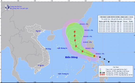 Dự báo sáng mai 30/10, bão Nalgae đi vào Biển Đông và trở thành cơn bão số 7 trong năm nay.