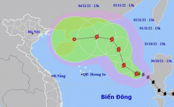 Đến 13 giờ ngày 1-11, vị trí tâm bão số 7 ở vào khoảng 19,2 độ Vĩ Bắc, 116,1 độ Kinh Đông, cách Hoàng Sa khoảng 580 km về phía Đông. Bão di chuyển theo hướng Tây Tây Bắc, mỗi giờ đi được 10 km, sức gió mạnh nhất vùng gần tâm bão mạnh cấp 11-12, giật cấp 14. Vùng nguy hiểm trên Biển Đông trong 24 giờ tới: 15,0-22,0 độ Vĩ Bắc, phía Đông kinh tuyến 113,0 độ Kinh Đông. Vùng biển Bắc Biển Đông chịu rủi ro thiên tai cấp 3.