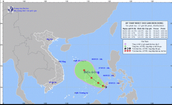 Nhận định về áp thấp nhiệt đới, ông Nguyễn Văn Hưởng, Trưởng Phòng Dự báo thời tiết, Trung tâm Dự báo Khí tượng Thủy văn Quốc gia cho biết, chiều 5/5, áp thấp nhiệt đới đã vượt qua đảo Palawan, Philipines đi vào Biển Đông.