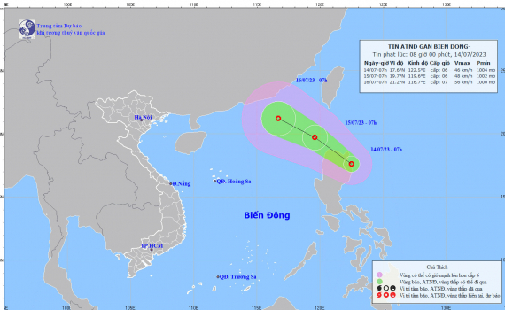 Hồi 07 giờ ngày 14/7, vị trí tâm áp thấp nhiệt đới ở vào khoảng 17,6 độ Vĩ Bắc; 122,5 độ Kinh Đông, trên khu vực vùng biển phía Đông đảo Lu-Dông (Philippin). Sức gió mạnh nhất vùng gần tâm áp thấp nhiệt đới mạnh cấp 6 (39-49km/giờ), giật cấp 8.