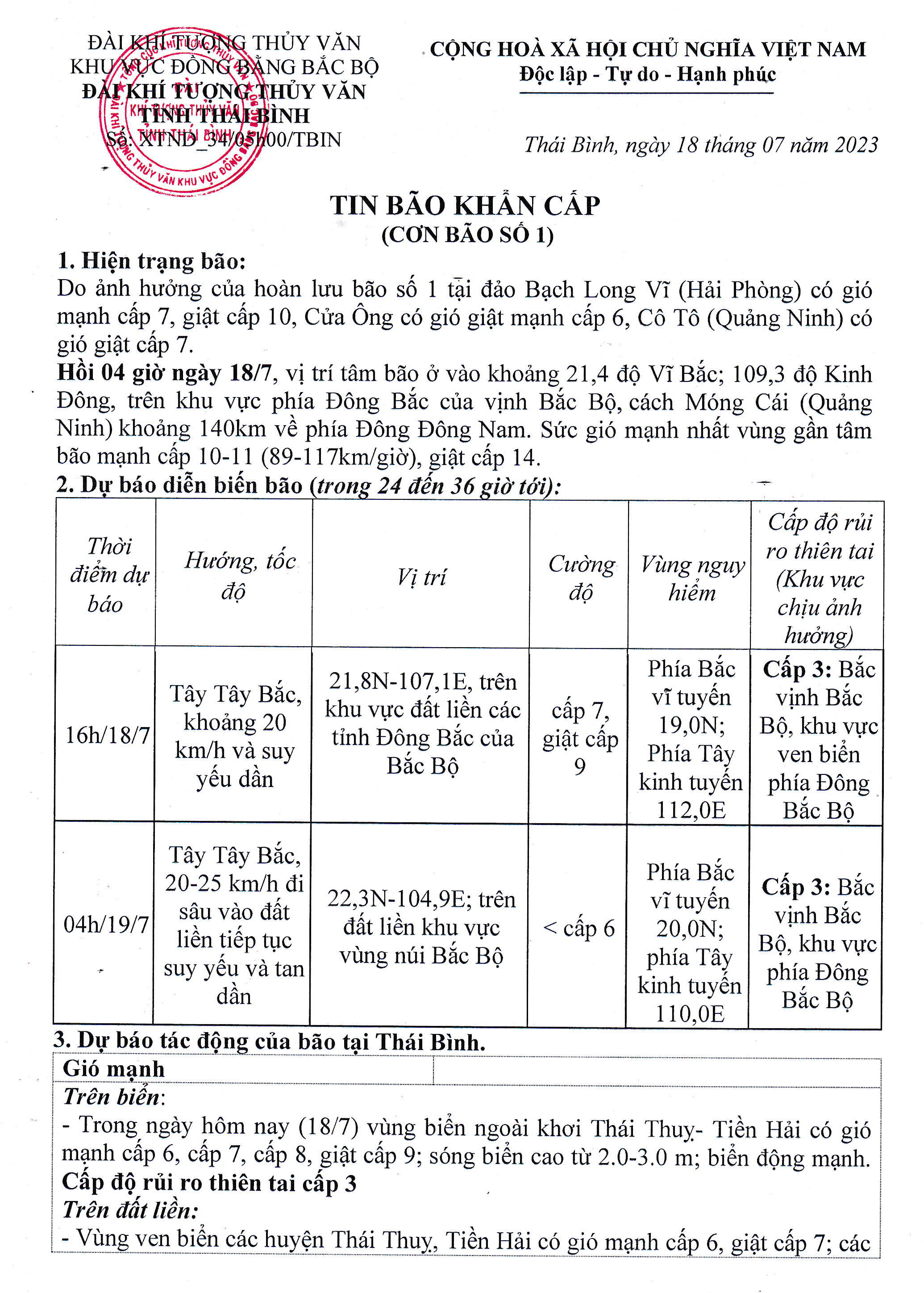 - Tin bão khẩn cấp (Cơn bão số 1) 17.07.2023 | 20:11 PM